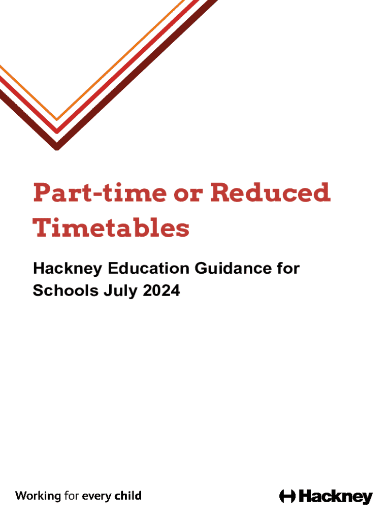 Parttime or Reduced Timetables Hackney Education Guidance for Schools July 20241Guidance contents 1. Introduction 2. 3. 4. 5.Section 1: What is a part time/ reduced timetable? Section 2: Part time