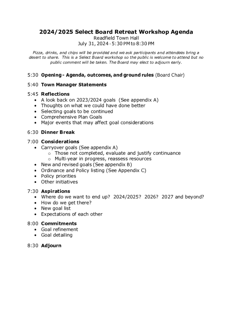 Get the free Select Board Retreat Workshop Agenda