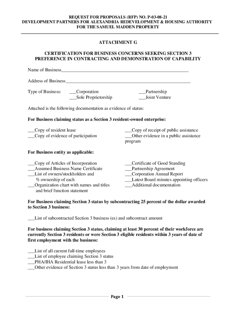 CERTIFICATION FOR BUSINESS CONCERNS SEEKING