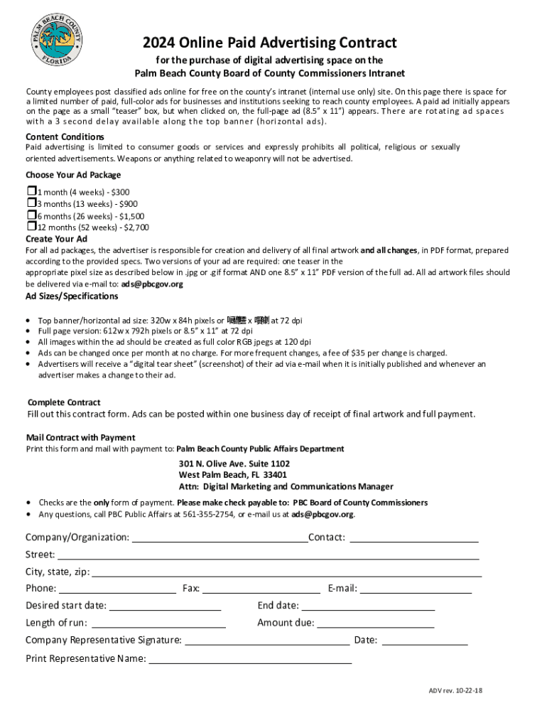 2024 Online Paid Advertising Contractor the purchase of digital advertising space on the Palm Beach County Board of County Commissioners Intranet County employees post classified ads online for free