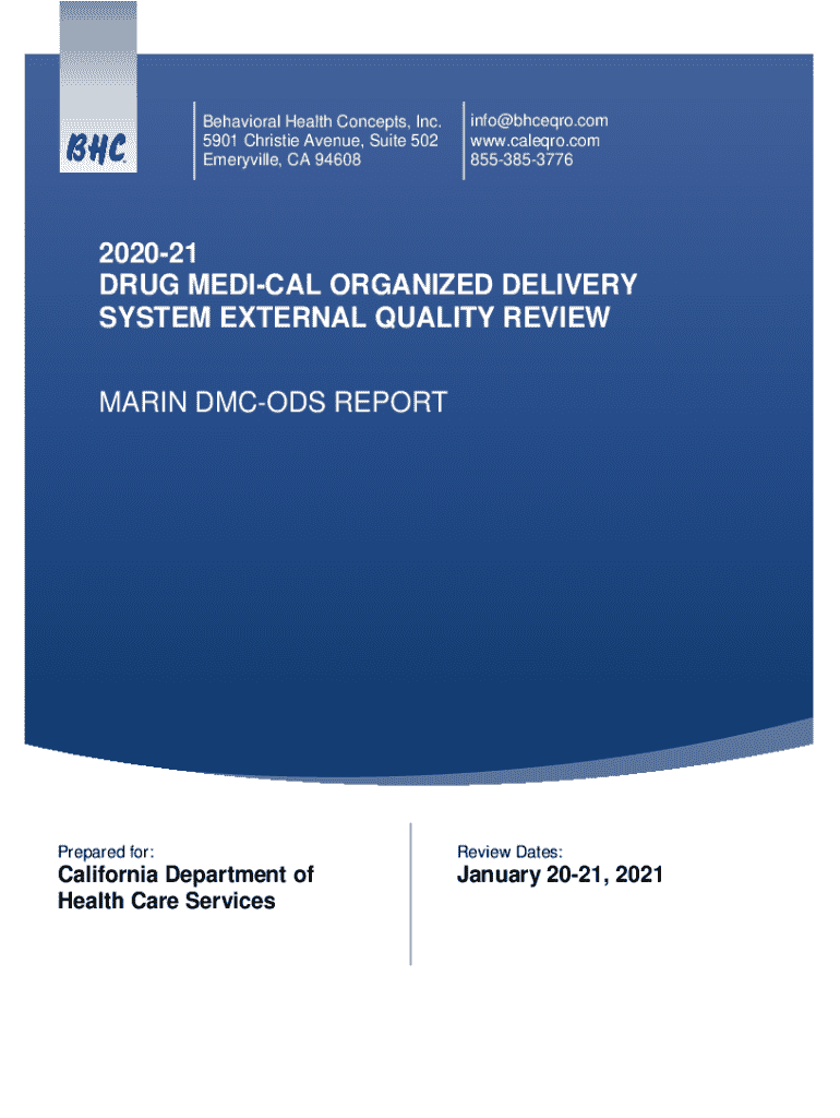 1Behavioral Health Concepts, Inc. 5901 Christie Avenue, Suite 502 Maryville, CA 94608info@bhceqro.com www.caleqro.com 8553853776202021 DRUG MEDICAL ORGANIZED DELIVERY SYSTEM EXTERNAL QUALITY REVIEW