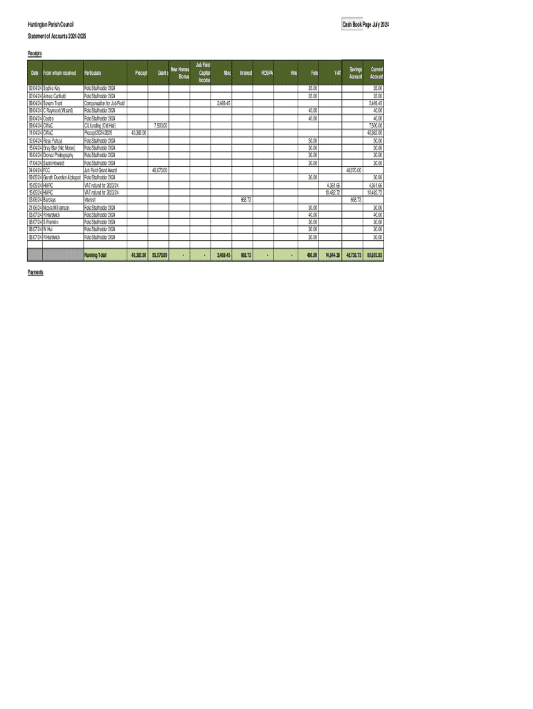 Get the free Huntington Parish Council Cash Book Page July 2024 ...