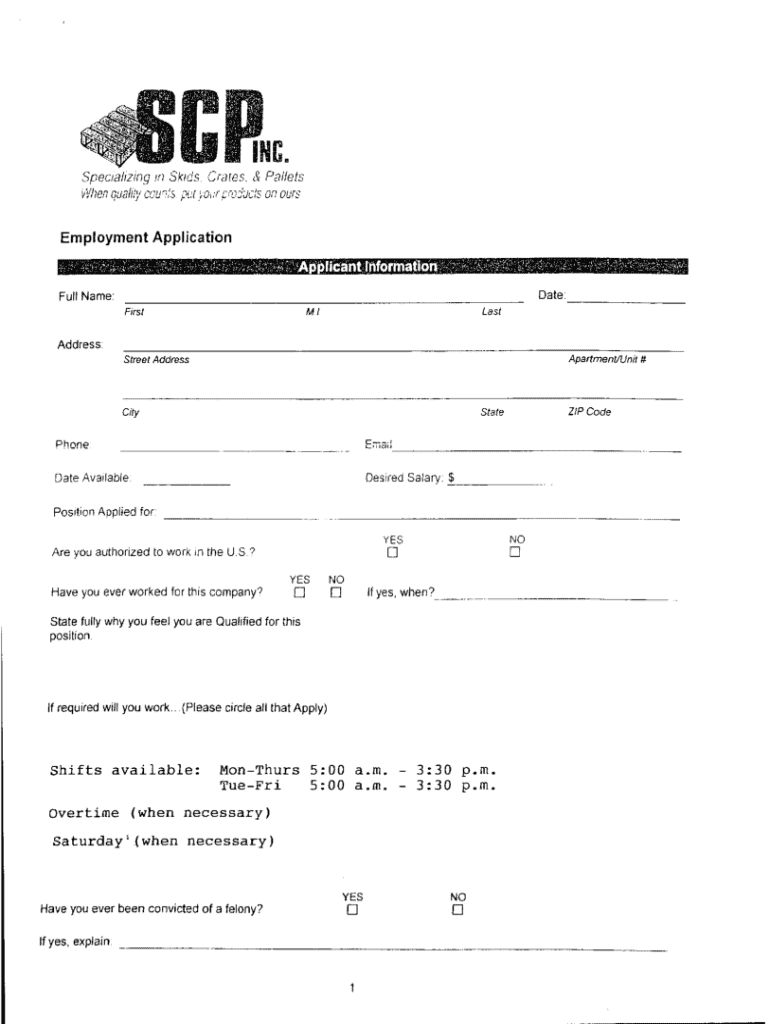 specializingin Skids.w/hen quslily ecu\"Is putCraf.es. & [OiirPalletscroducis on oursEmployment ApplicationApplicahtJhformafiOfi; Date:Full Name: FfrstLastMlAddress: Street AddressApartmentAJnit ttCityStateZIP