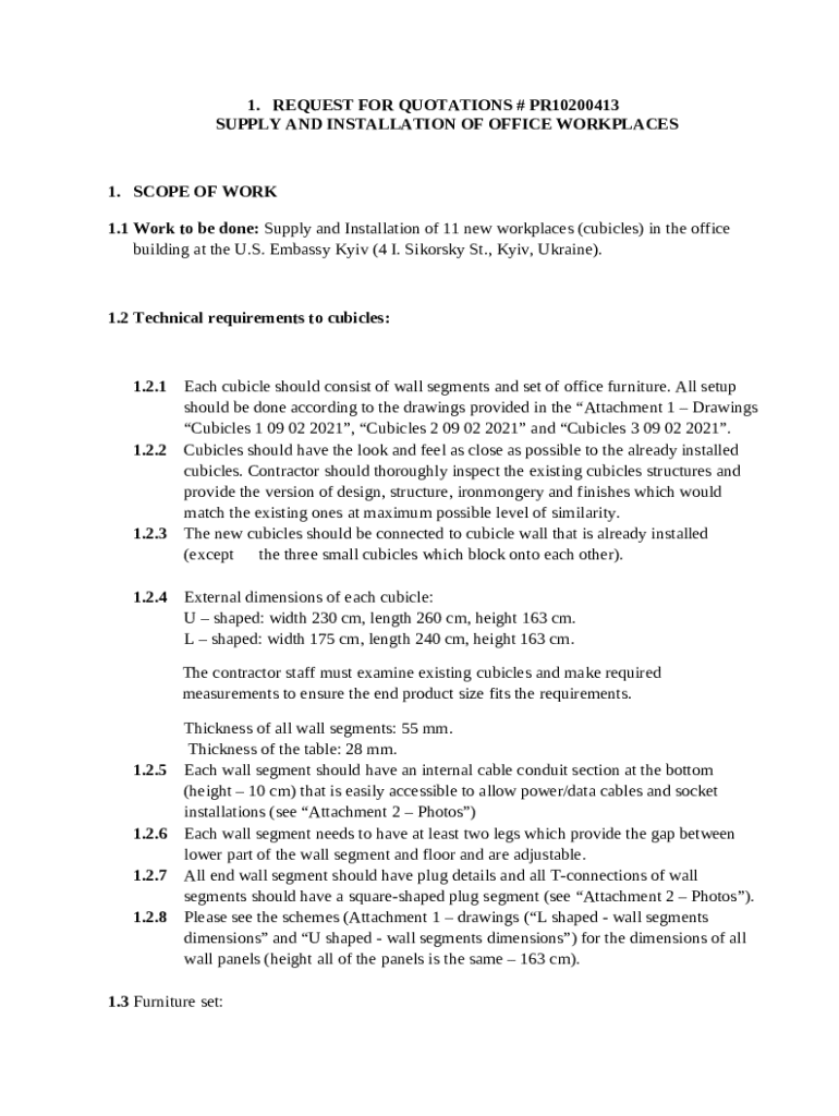 Instructions for the form REQUEST FOR QUOTATIONS # PR10200413