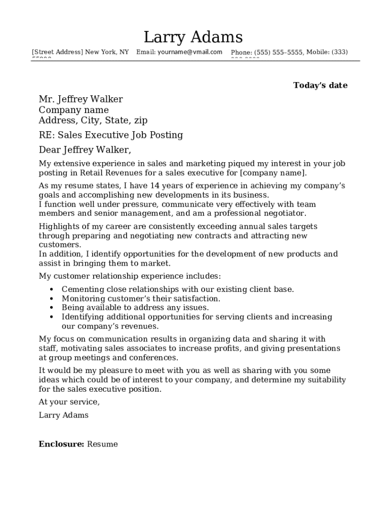 Sales Executive Cover Letter Sample - Job-Interview-Site.com template instructions