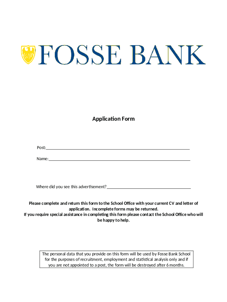 To start filling out the form Fosse Bank School, you will need a blank. If you use PDFfiller for filling out and submitting, you can obtain it in a few ways: