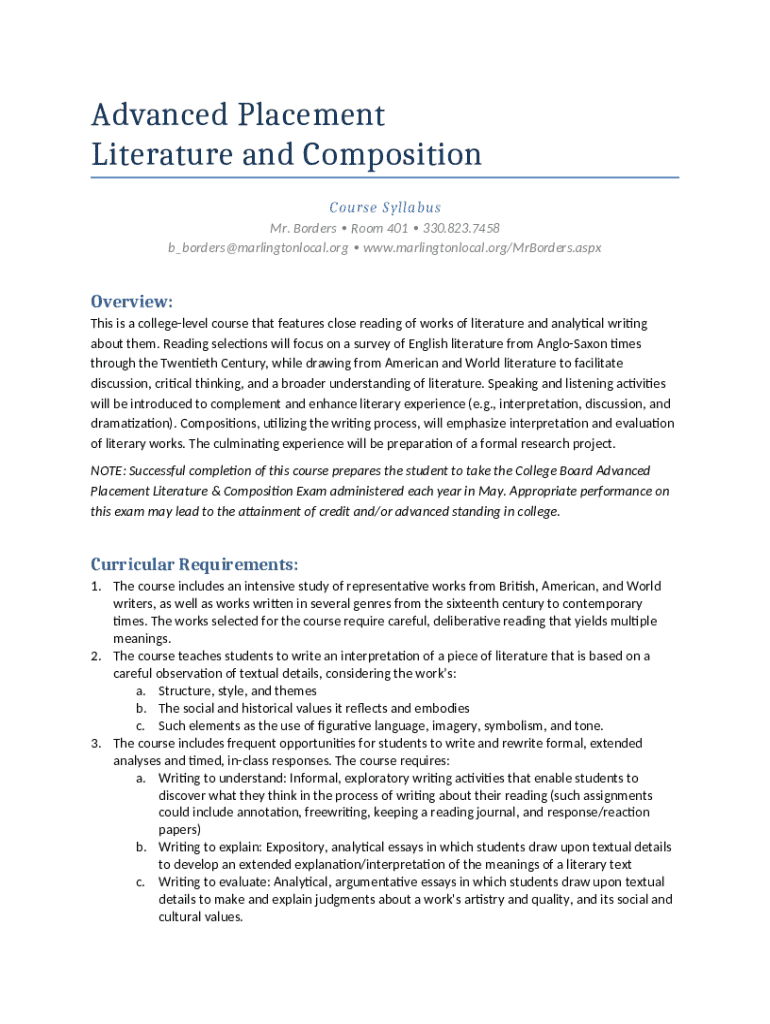 Comprehensive Guide to the AP English 11 Syllabus Form