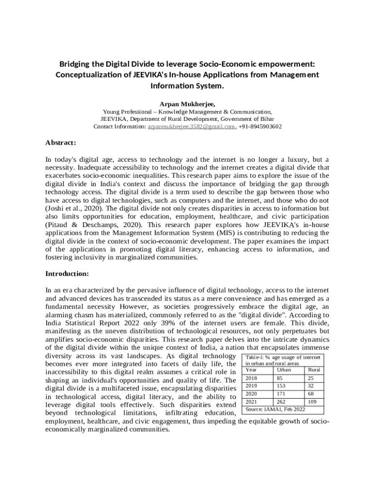 Frequently asked questions about the form BRIDGING THE DIGITAL DIVIDE TO LEVERAGE SOCIO- ...