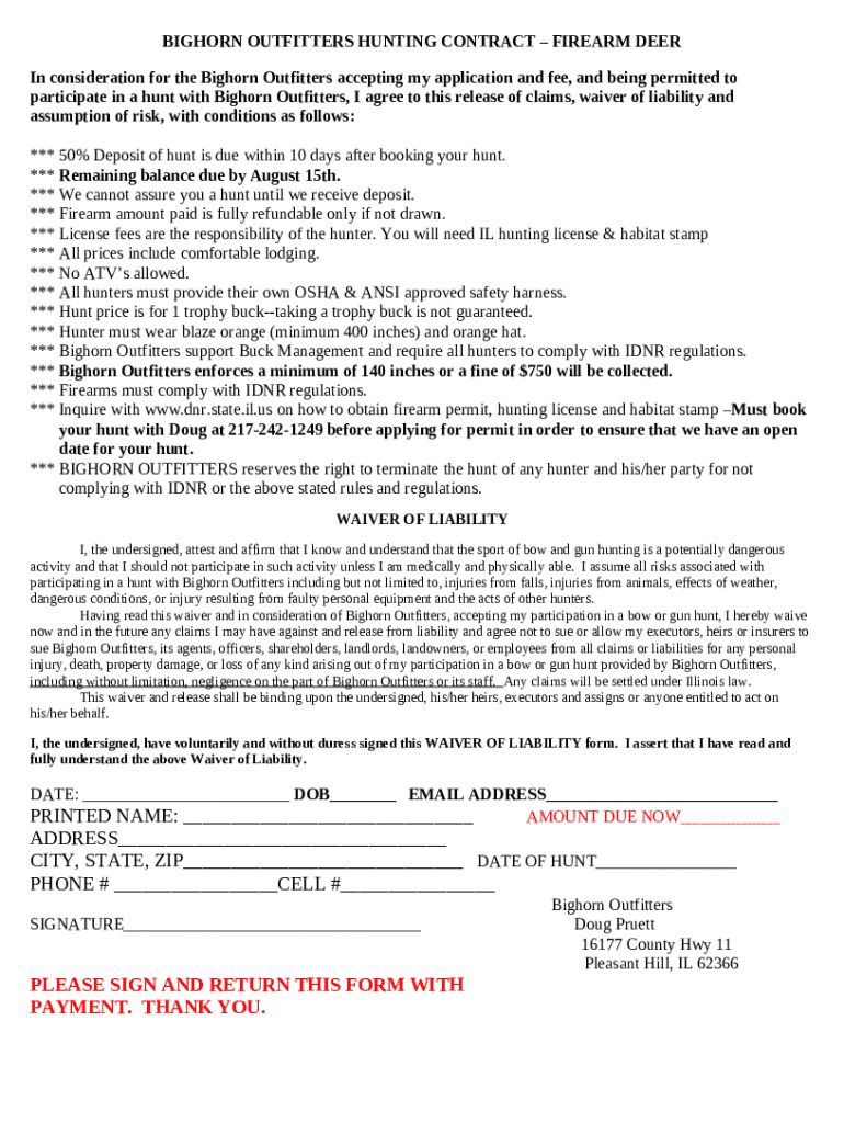 Bighorn Outfitters Hunting Contract Form: Your Comprehensive Guide