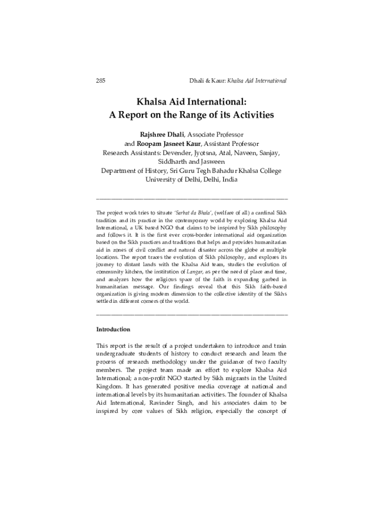 Get the free Khalsa Aid International: A Report on the Range of its ...