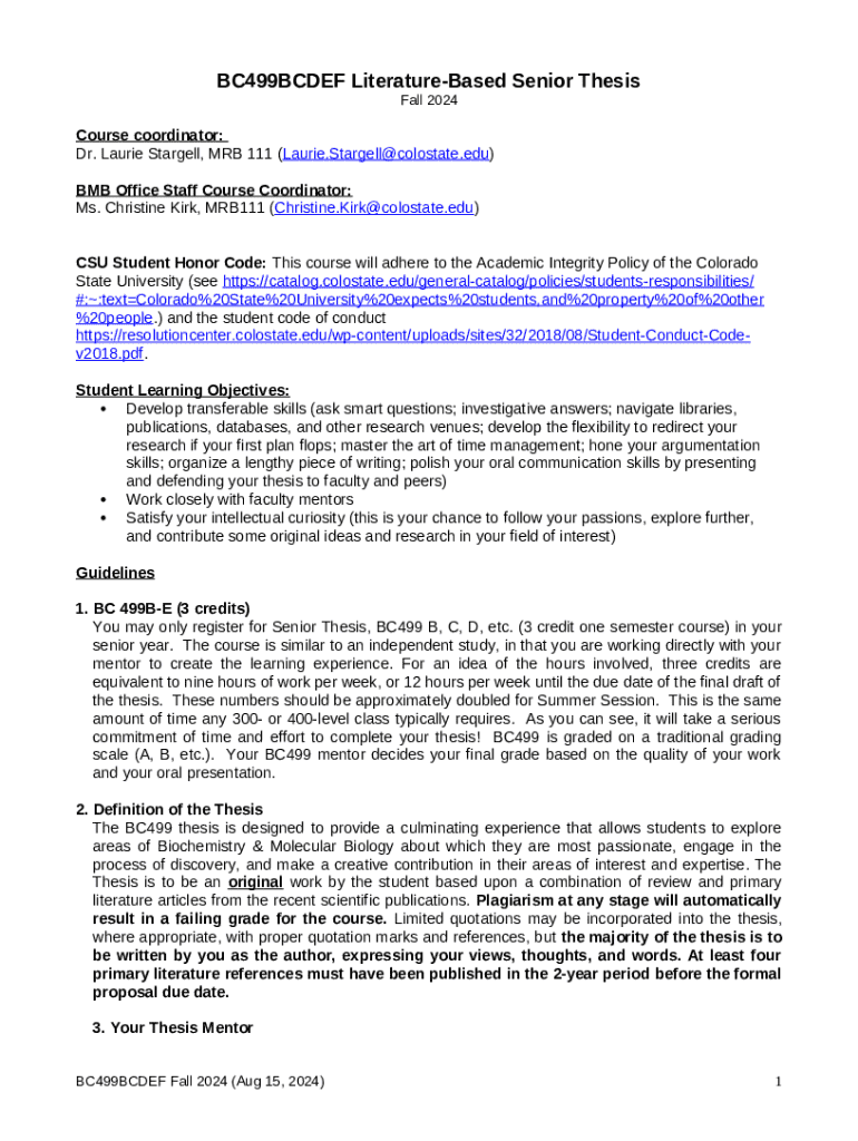 What is BC499BCDEF Literature-Based Senior Thesis Form?