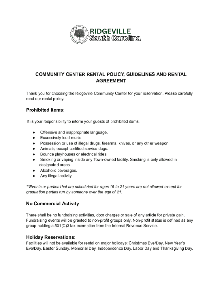 Get the free COMMUNITY CENTER RENTAL POLICY, GUIDELINES AND RENTAL AGREEMENT - Google Docs