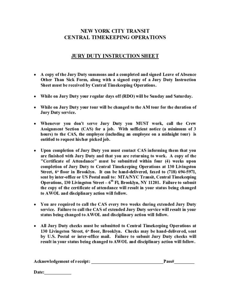 Understanding common inquiries regarding the NYCT Jury Duty Instruction Form can alleviate concerns and clarify expectations. Here are some frequently asked questions: