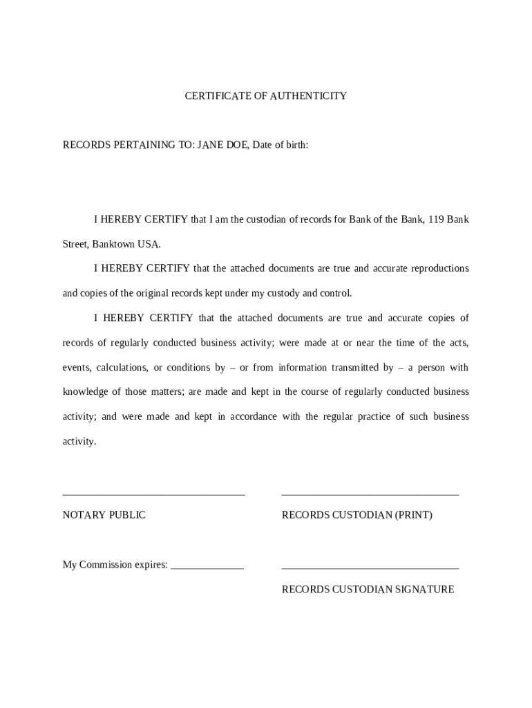 Affirmation of Truthfulness: Include a statement where the declarant affirms the accuracy of the records, usually in a sworn format.