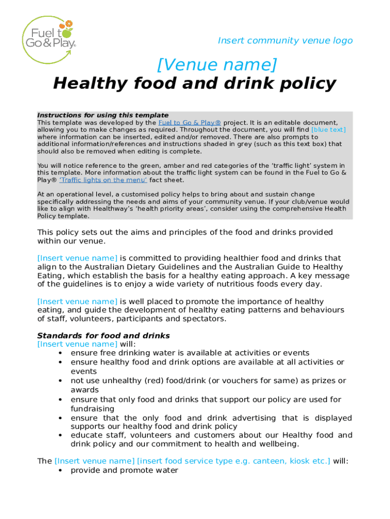 The healthy food and drink form is an invaluable tool for tracking nutritional choices and ensuring a balanced intake. Begin by determining the nutritional goals based on personal dietary needs, which can be influenced by factors such as fitness routines or health conditions.