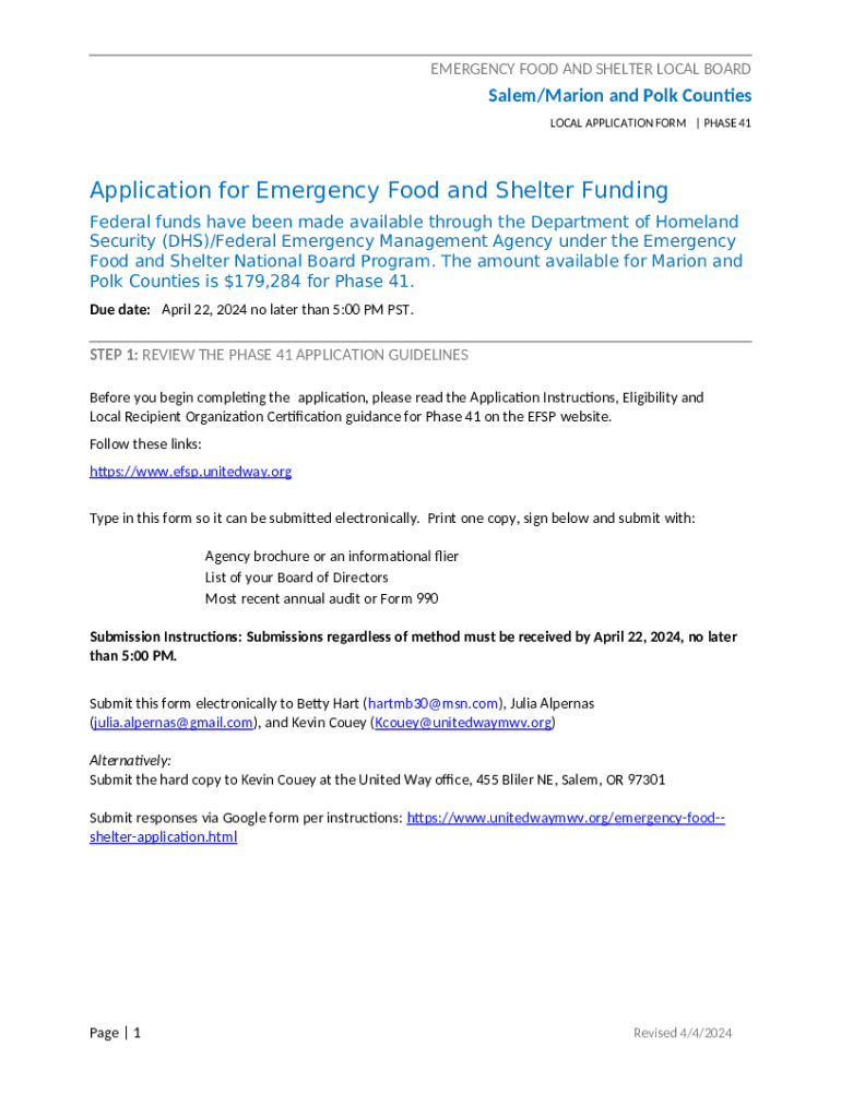 Completing the Emergency Food and Shelter Form can be daunting if you are unfamiliar with the process. Follow this step-by-step guide to ensure your application is accurately filled out: