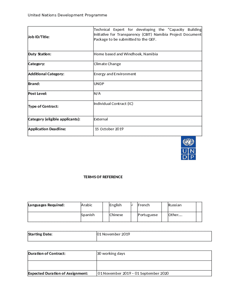 Namibia Govt Tender for Technical Expert for developing the - info undp template instructions