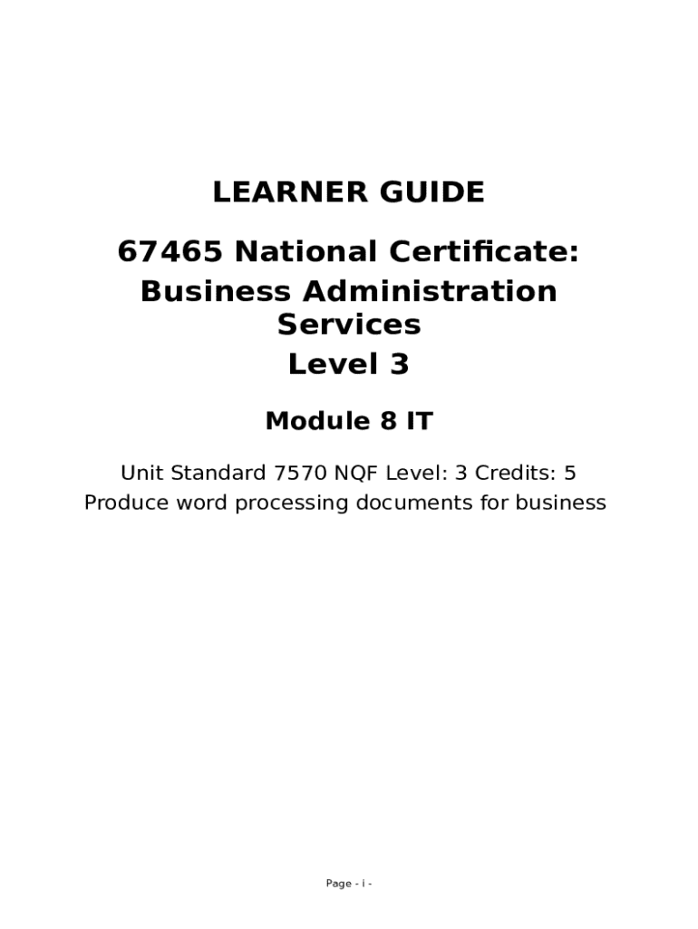 The Business Administration Services NQF Level 3 is a fillable form in MS Word extension that should be submitted to the specific address in order to provide specific info. It needs to be completed and signed, which may be done manually in hard copy, or with the help of a particular software like PDFfiller. It allows to fill out any PDF or Word document directly in your browser, customize it according to your purposes and put a legally-binding e-signature. Right after completion, the user can easily send the Business Administration Services NQF Level 3 to the relevant individual, or multiple ones via email or fax. The editable template is printable too due to PDFfiller feature and options presented for printing out adjustment. Both in digital and in hard copy, your form will have got neat and professional appearance. Also you can turn it into a template for further use, there's no need to create a new file again. All you need to do is to customize the ready document.