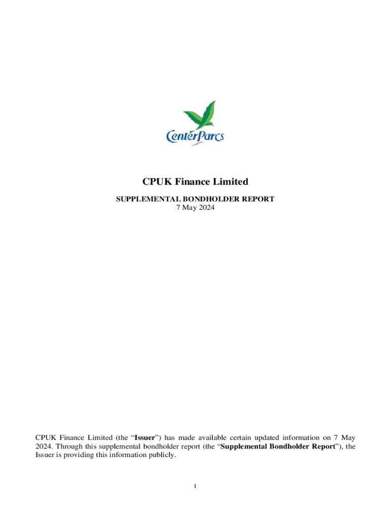 CPUK Finance Limited SUPPLEMENTAL BONDHOLDER REPORT 7 May 2024CPUK Finance Limited (the Issuer) has made available certain updated information on 7 May 2024. Through this supplemental bondholder report (the Supplemental Bondholder Report), the Issuer is providing this information publicly.1CONTENTS FORWARDLOOKING STATEMENTS ........................................................................................................................... 3 USE OF CERTAIN TERMS IN THIS SUPPLEMENTAL...