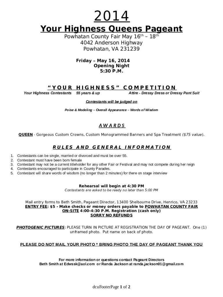 WESTLAKE FAMILY FUN AND FOOD FESTIVAL PAGEANT template instructions
