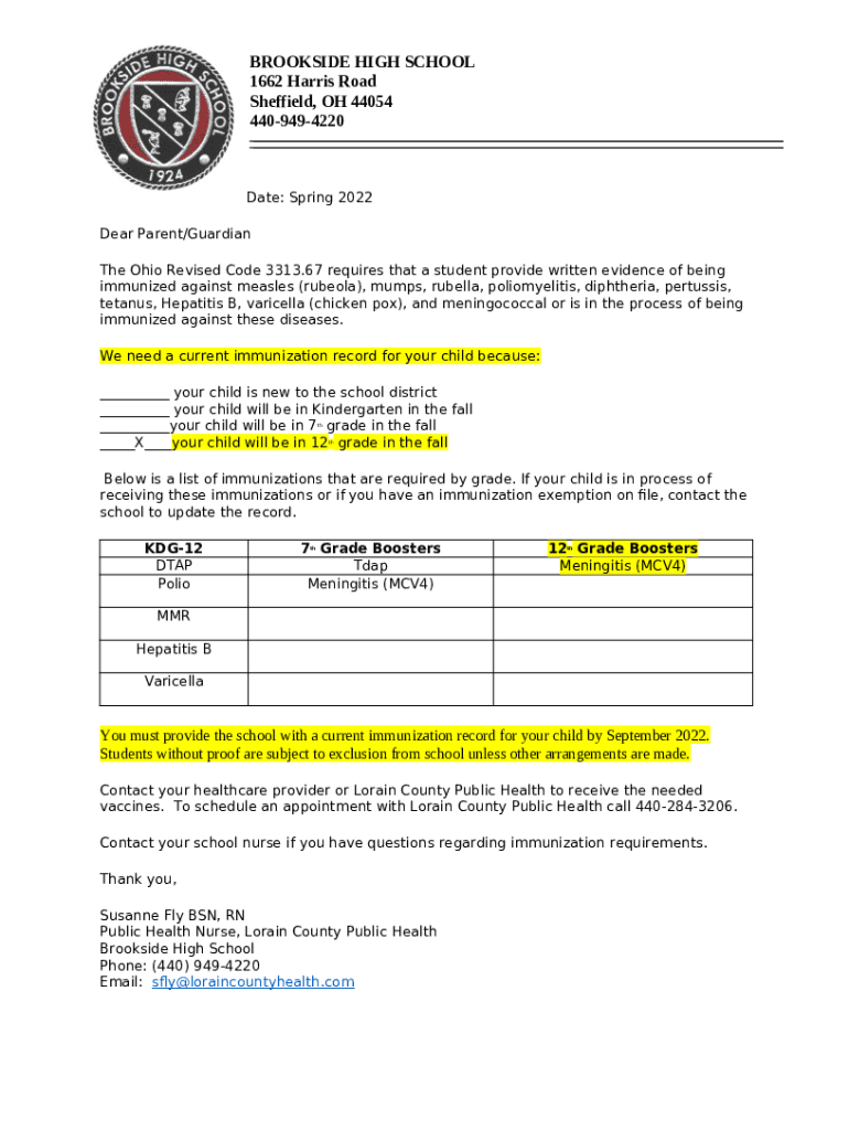 Dear Parent/Guardian The Ohio Revised Code 3313.67 ... template instructions