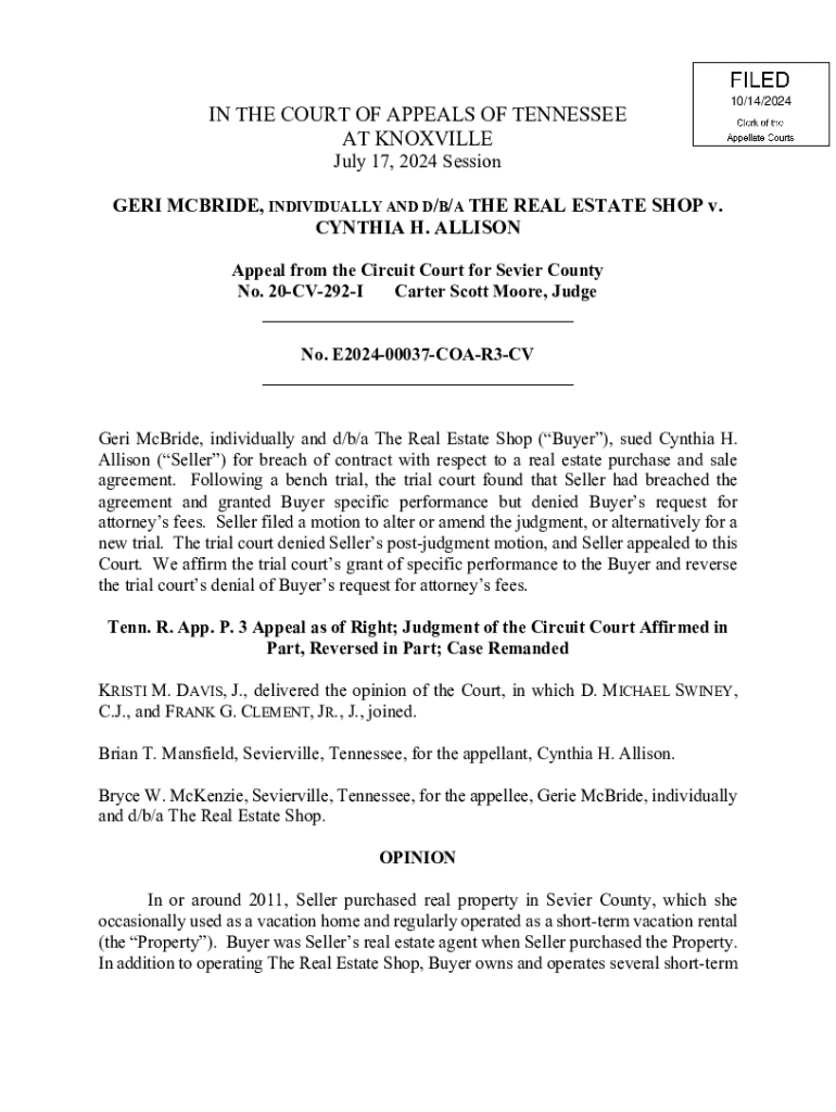 Get the free Geri McBride, Individually and d/b/a The Real Estate Shop ...