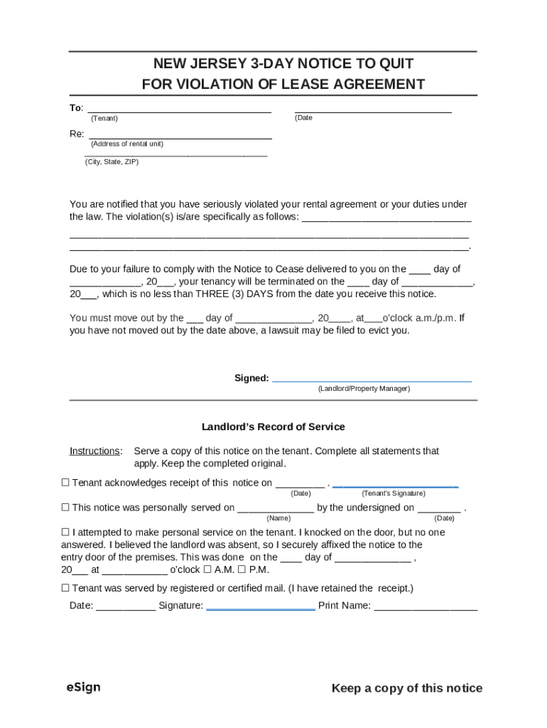 Understanding tenant rights is crucial for both landlords and tenants in New Jersey. Tenants are afforded various protections under the state law, which can influence how notices are served and processed.