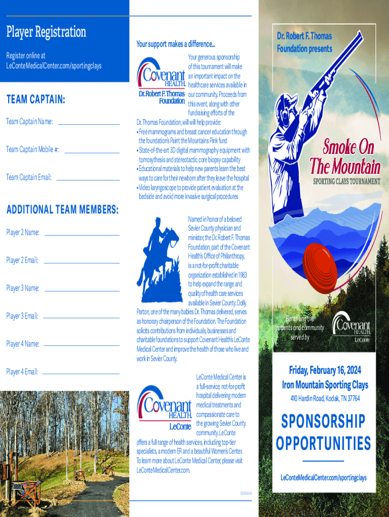 Player Registration Register online at LeConteMedicalCenter.com/sportingclaysTEAM CAPTAIN: Team Captain Name: Team Captain Mobile #: Team Captain Email:ADDITIONAL TEAM MEMBERS: Player 2 Name: Player