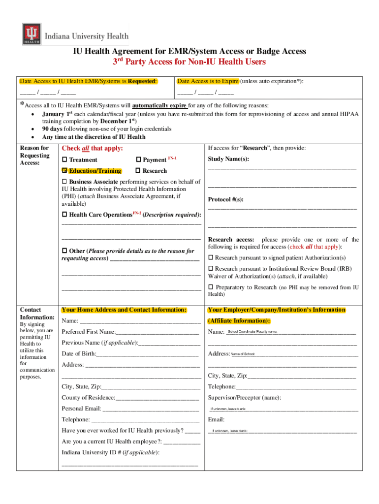 Understanding the importance of the Non-IU Health Research Access Form extends beyond compliance; it is about safeguarding the integrity of research projects and the privacy of individuals whose data is included. This form is particularly relevant for researchers, healthcare professionals, and administrative staff involved in various health research projects.