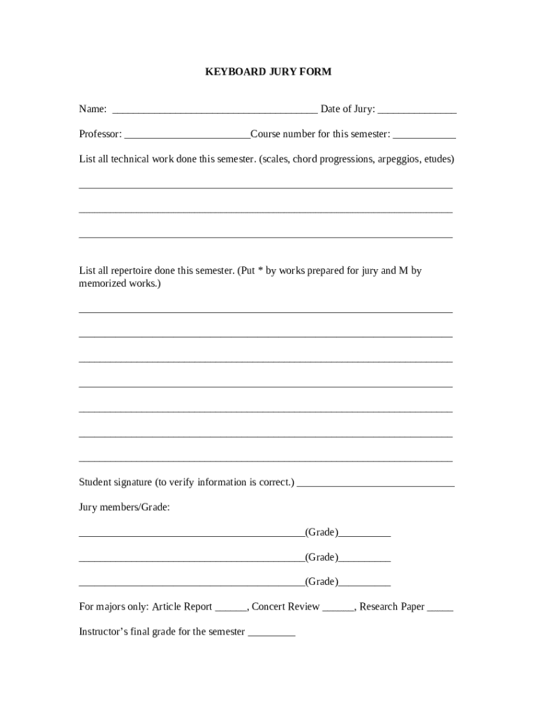 The Name: Date of Jury: is a writable document that has to be completed and signed for specific reasons. Next, it is furnished to the relevant addressee to provide specific info of certain kinds. The completion and signing can be done or using a suitable service like PDFfiller. These tools help to send in any PDF or Word file without printing them out. It also allows you to edit its appearance according to your needs and put legit electronic signature. Once finished, the user ought to send the Name: Date of Jury: to the recipient or several recipients by email and also fax. PDFfiller has got a feature and options that make your Word form printable. It includes a variety of options when printing out. No matter, how you will send a form - in hard copy or electronically - it will always look professional and clear. In order not to create a new editable template from scratch again and again, turn the original Word file into a template. Later, you will have a customizable sample.