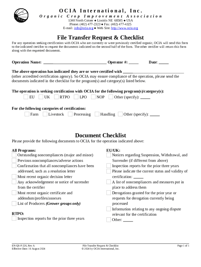 Template Ocia Certificate of Inspection Checklist Doc Template instructions