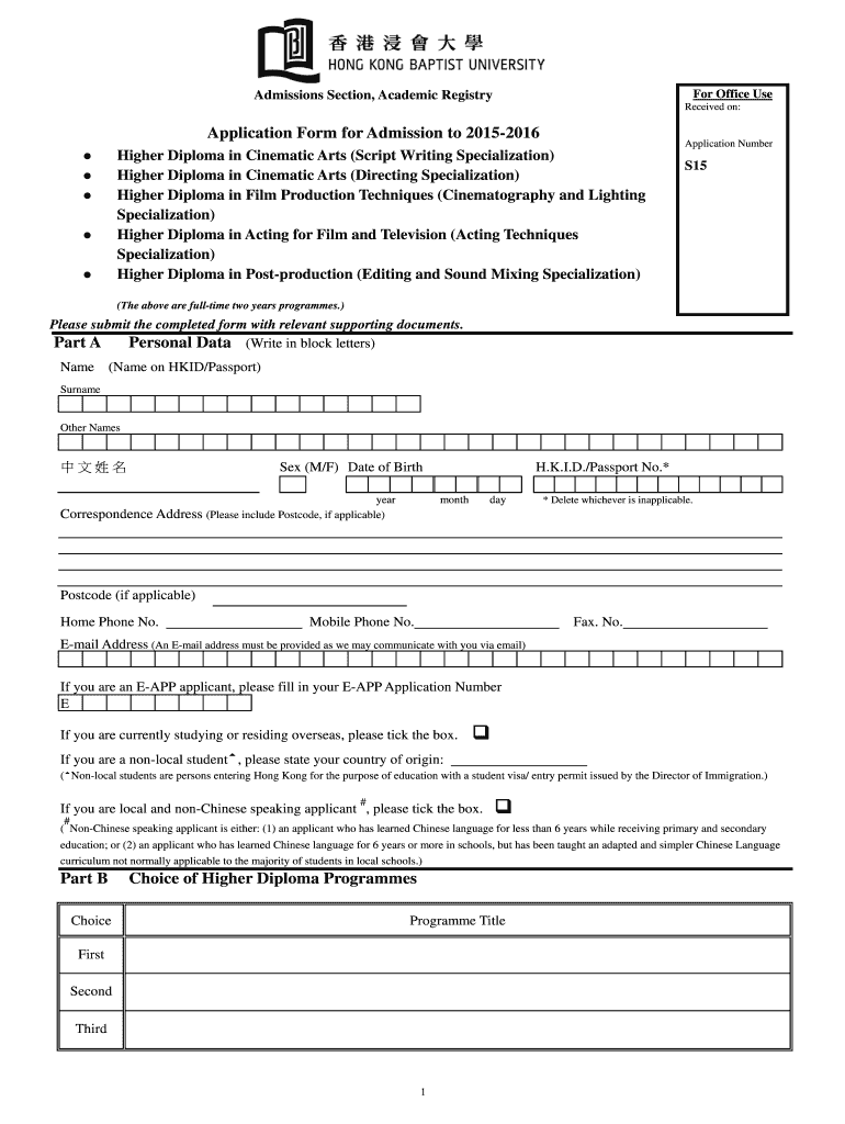 Get the free Application Form for Admission to 2015-2016 - af hkbu edu
