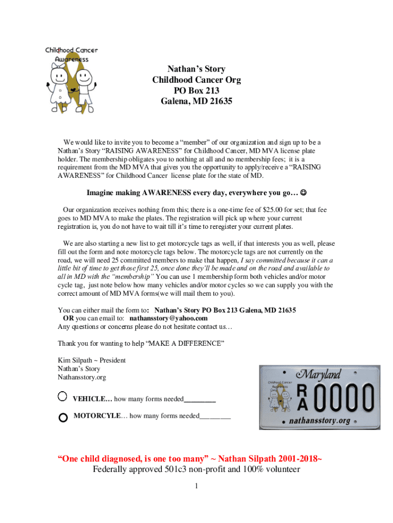 Get the free Nathan's Story Childhood Cancer Org PO Box 213 Galena, ...