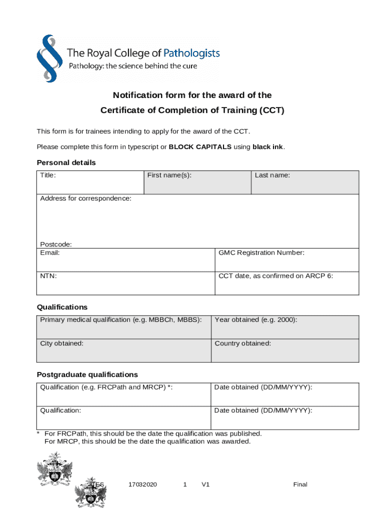What is Notification for CCT application Form?