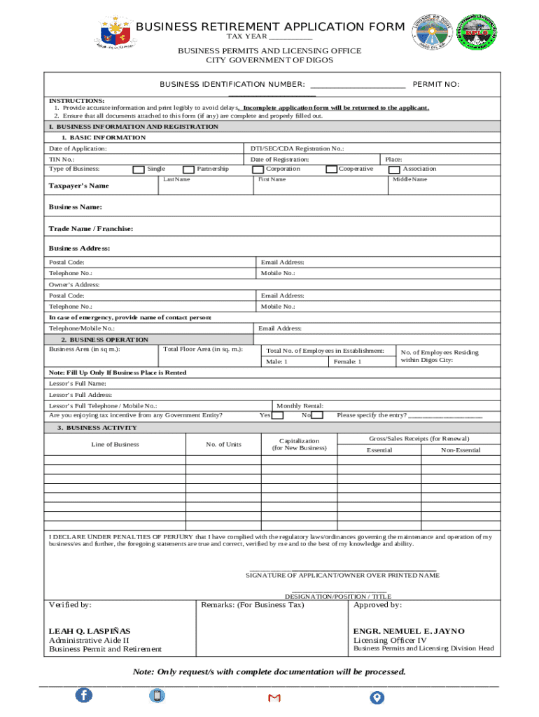Template READ Business Permit and Licensing Division Citizen's ... instructions