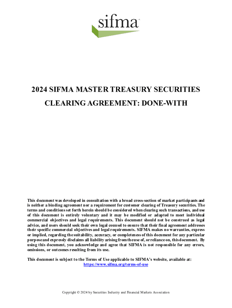 The current market practices related to Treasury clearing highlight the importance of compliance and accuracy in documentation. Industry stakeholders must keep abreast of regulatory requirements that influence the use of the SIFMA Treasury Clearing Form. This includes being aware of guidelines from various regulatory bodies that govern these transactions.