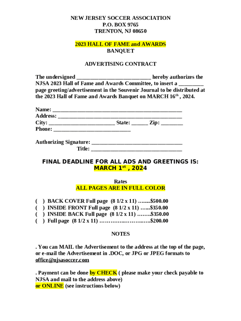 Before beginning the NJSA form filling process, it’s crucial to understand eligibility requirements. For players, participants must meet age criteria set by the NJSA, which varies depending on the level of competition. Coaches must also provide proof of their qualifications, which may include certifications from recognized soccer organizations.