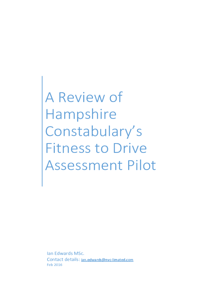 Get the free A Review of Hampshire Constabularys Fitness to Drive Assessment Pilot