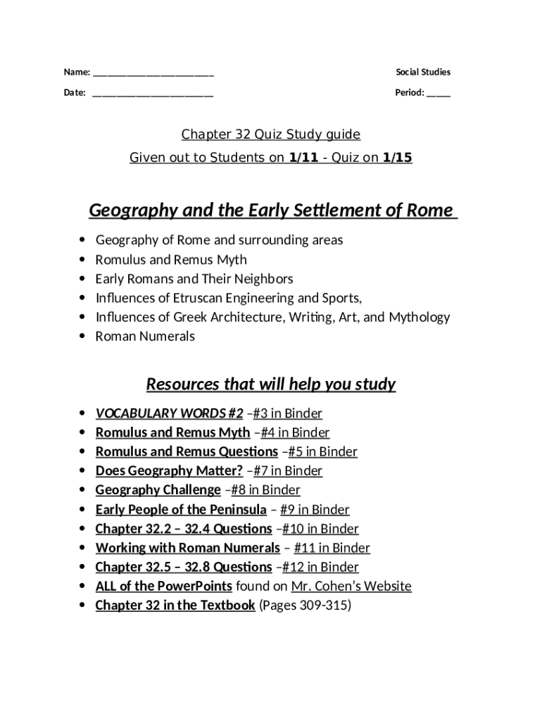 Instructions for the form Quiz on 1/15 Geography and the Early Settlement of Rome