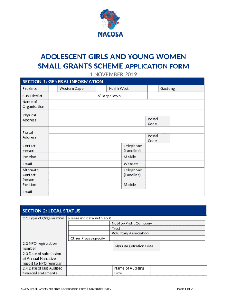 Instructions for the ADOLESCENT GIRLS AND YOUNG WOMEN form