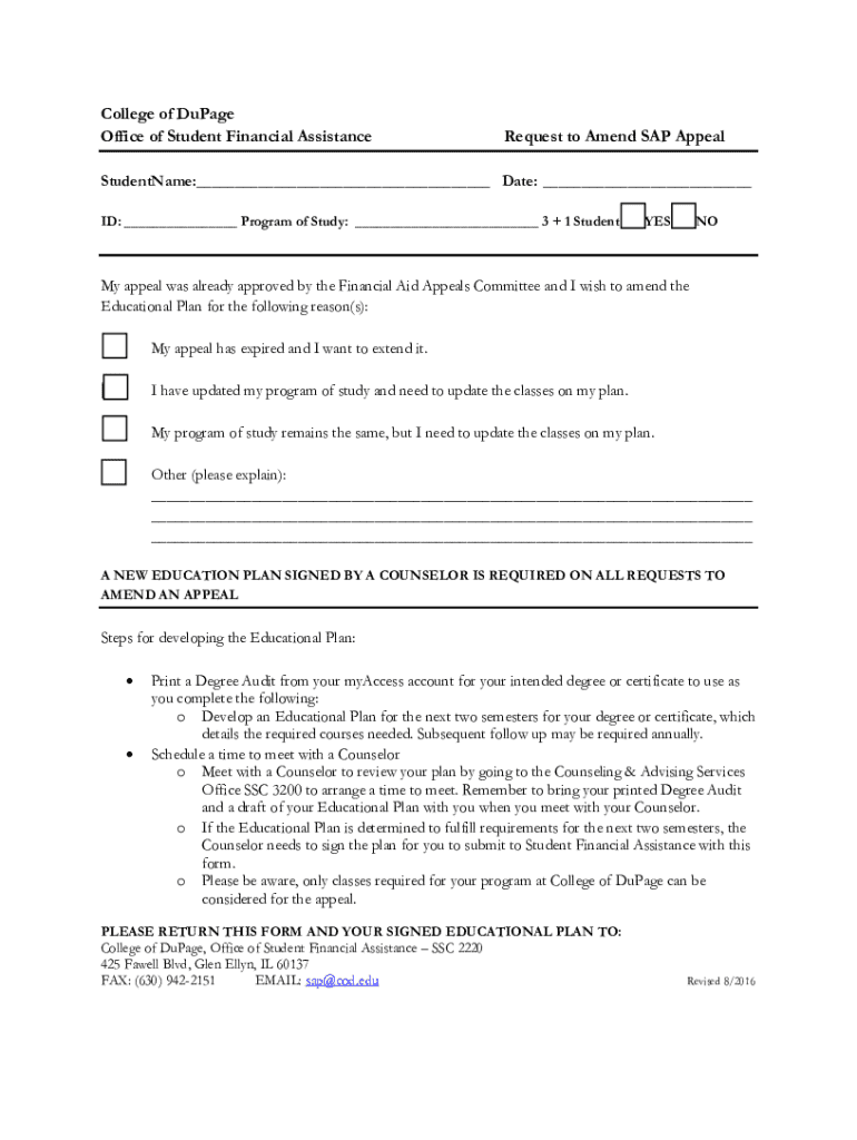Filling out the SAP appeal form requires careful attention to detail. Begin by gathering all necessary personal and academic information. Once you have everything at hand, articulate your circumstances clearly and detail how they impacted your academic progress. Providing documentation to validate your claims is also vital.