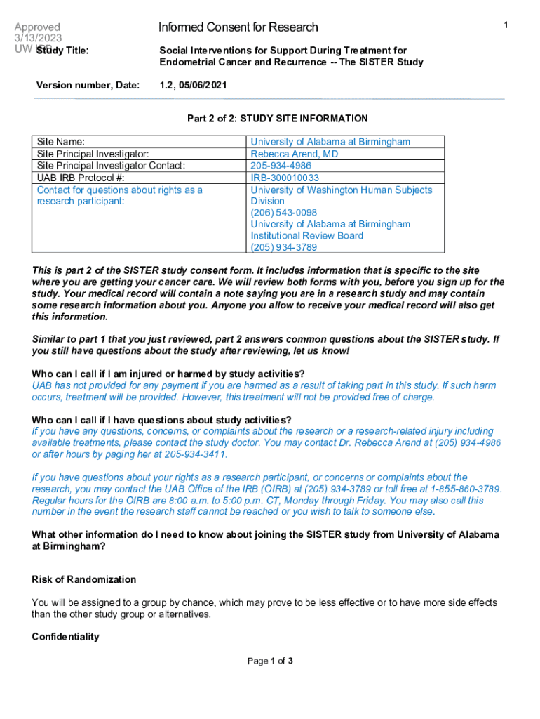 Get the free Informed Consent for Research - Why the SISTER Study?
