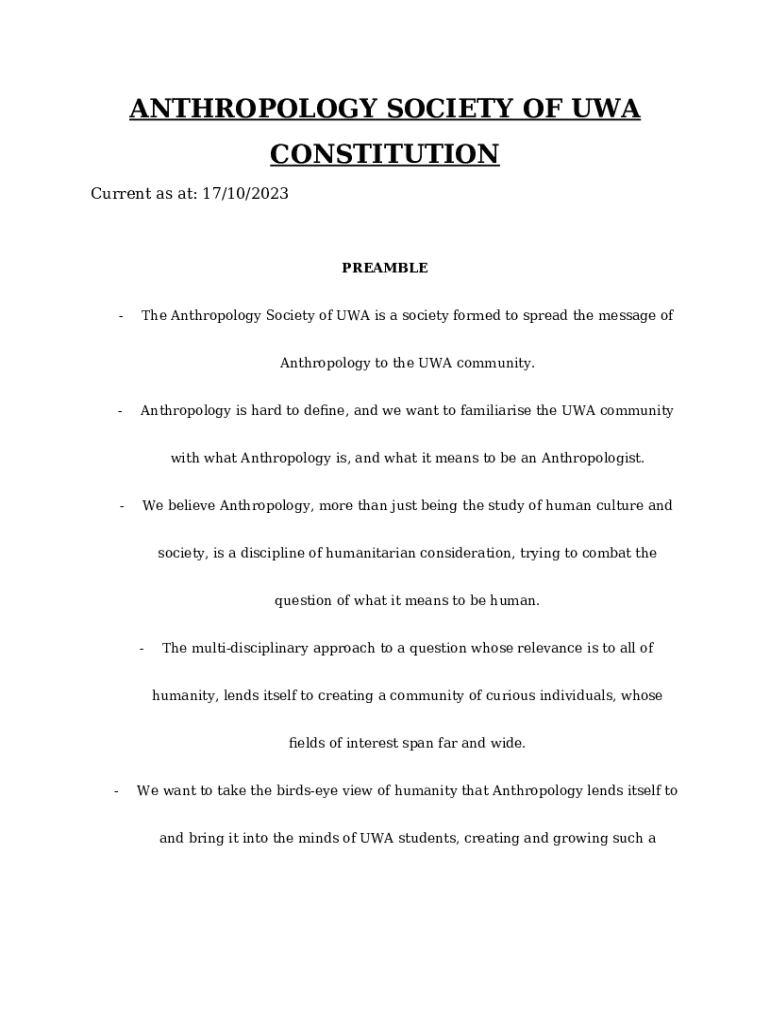 Anthropology Society of UWA Constitution Template Form: A Comprehensive Guide