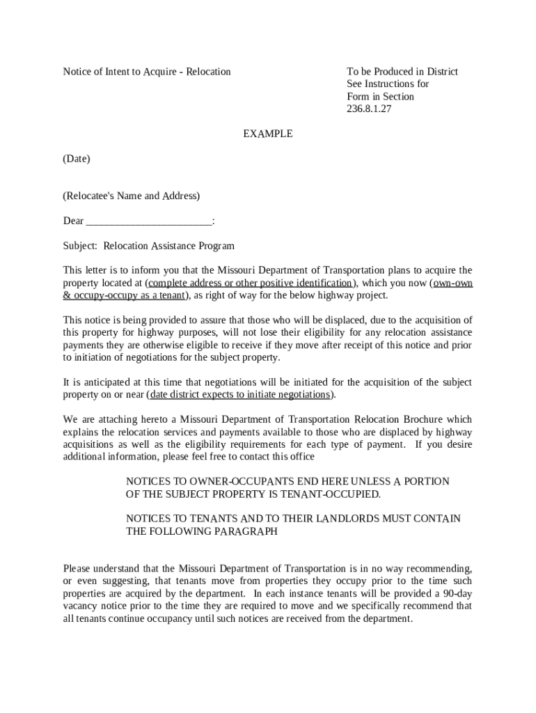 Instructions for the form Notice of Intent to Acquire 236.8.1.27 - epg modot