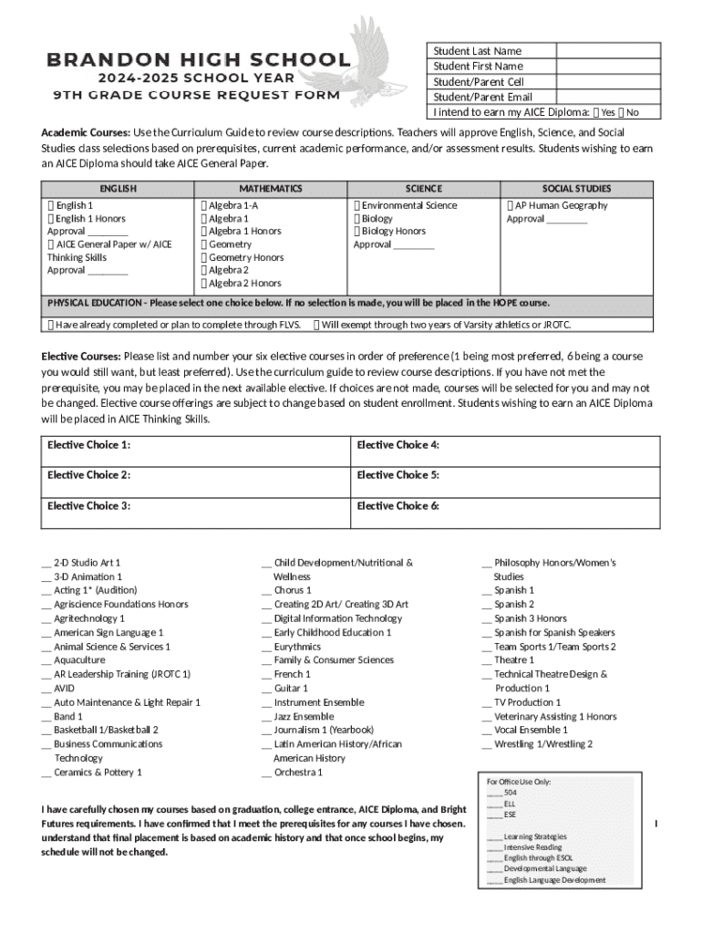 Instructions for the form I intend to earn my AICE Diploma: Yes No
