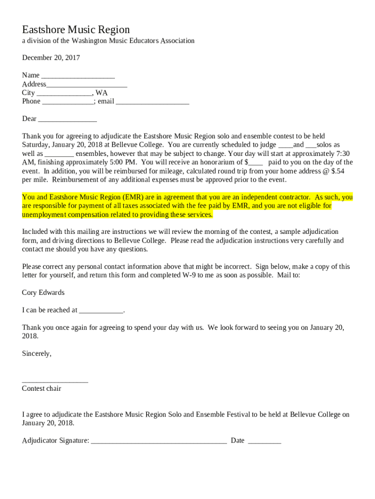 The Northlake Music Educators Association is a Word document required to be submitted to the required address in order to provide some information. It has to be filled-out and signed, which may be done manually in hard copy, or via a particular software e. g. PDFfiller. This tool helps to fill out any PDF or Word document directly from your browser (no software requred), customize it depending on your purposes and put a legally-binding electronic signature. Right after completion, user can send the Northlake Music Educators Association to the appropriate receiver, or multiple recipients via email or fax. The blank is printable as well because of PDFfiller feature and options presented for printing out adjustment. In both electronic and in hard copy, your form will have got clean and professional outlook. You can also turn it into a template for later, there's no need to create a new document over and over. All you need to do is to customize the ready document.