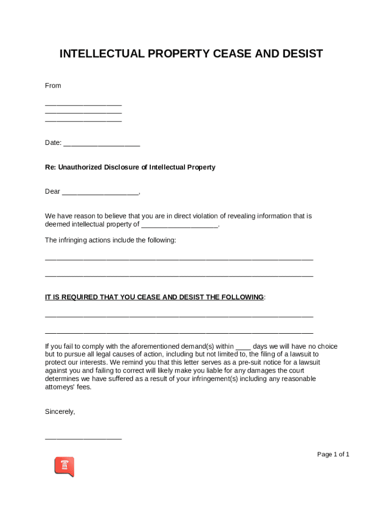 These letters commonly arise in situations involving intellectual property disputes, harassment claims, or breaches of contract. For instance, a business may send a cease-and-desist letter if they believe their trademark is being unlawfully used by another company.
