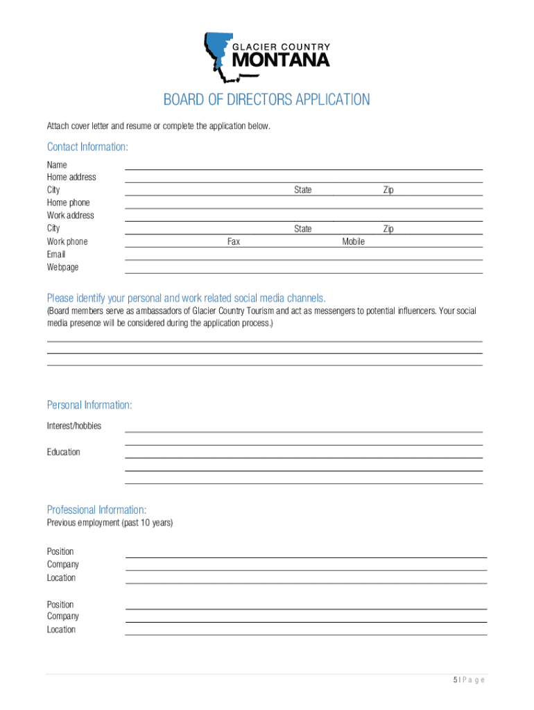 GLACIER COUNTRY REGIONAL TOURISM COMMISSION (DBA Glacier Country Tourism)BOARD OF DIRECTORS APPLICATION PACKET OVERVIEW Glacier Country Tourism is: + + + +A nonprofit association promoting tourism