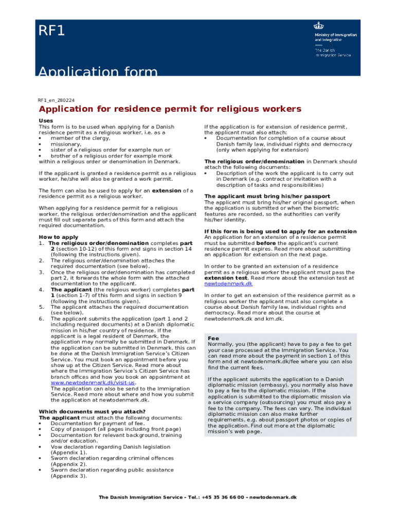 What is Apply for a residence permit in Denmark as a religious ... Form?