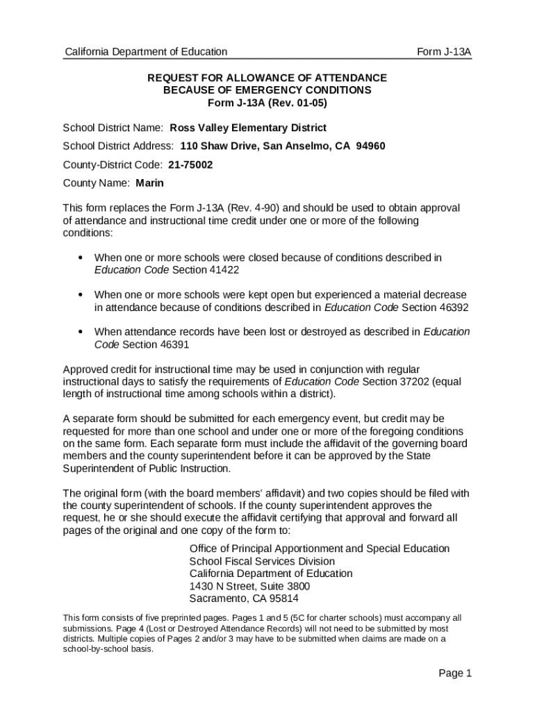 The J-13A form is an essential document issued by the California Department of Education (CDE) designed primarily for funding purposes. Its primary objective is to provide accurate data about pupil enrollment and attendance in California's schools, which directly impacts the allocation of state funding. Understanding the intricacies of this form is crucial for both educational institutions and families involved in California's education system.